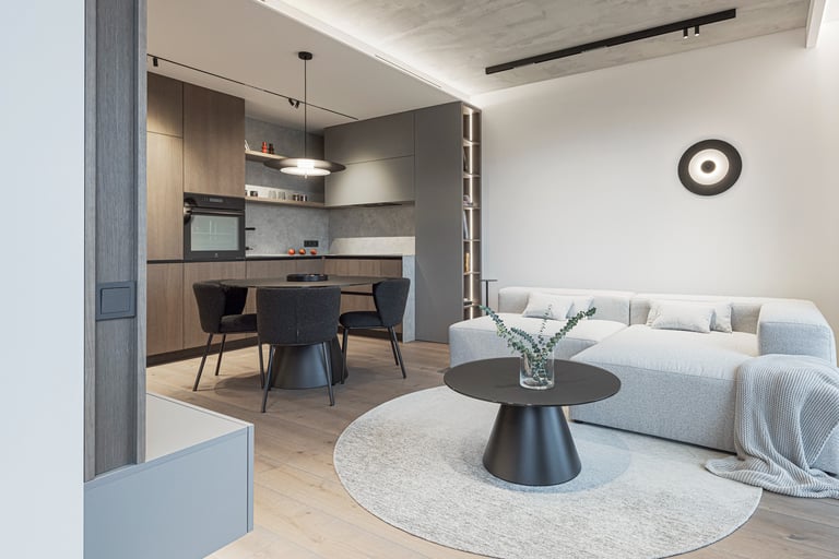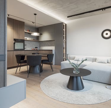 Jeigu negalite sau leisti interjero dizainerio paslaugų, tačiau norisi puikiai tarpusavyje suderintų kokybiškų medžiagų, baldų, šviestuvų parinkčių ir kitų interjero elementų, šis projektas skirtas būtent Jums. Laikui nepavaldūs spalvų deriniai ir švarios formos - modernaus minimalizmo gerbėjams. Projektas darytas turint pilną laisvę, tačiau neišlipant iš vidutinės klasės įrengimo rėmų. Projektas tinkamas adaptuoti daugeliui naujos statybos 2-3 kambarių butams. Perkant projektą, visada suteikiama konsultacija dėl projekto pritaikymo Jūsų butui.